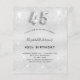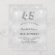 Um convite moderno, na moda e glamouroso para uma 45ª festa de aniversário. Um fundo com aparência de prata falsa, decorado com poeira brilhante. Personalize e adicione o seu nome e detalhes da festa. O número 45 é escrito com uma fonte de estilo de balão, script.