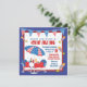Patriótico vermelho, branco e azul 4 de julho convite de festas de churrasco com estrelas e listras, foguetes, fogos de artifício, faixa de bandeiras e um pátio ao ar livre com guarda-chuva e o conjunto de mesas para seus itens piquenique. Perfeito para 4 de julho, um partido após uma eleição ou qualquer partido patriótico! Ilustração desenhada à mão por McBooboo