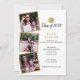 Apresentando suas 4 fotos de formando favoritas, este convite para festas de formatura preto e ouro moderno pode ser personalizado com suas fotos de formando e detalhes de celebração. Projetado por Thisnotme©