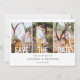 Compartilhe as notícias deliciosas do seu noivado, assim como quatro fotos com este elegante casamento, salve o convite de data em placas. Todas as fotos e textos são simples de personalizar. (DICA DE IMAGEM: Uma maneira fácil de centralizar uma foto exatamente como você deseja é recortá-la antes de carregá-la no site do Zazzle.) O design apresenta uma tipografia moderna minimalista e 4 das suas imagens personalizadas (3 na frente e 1 na parte traseira). Esta única nota de noivado anunciada é uma maneira elegante de informar amigos e familiares e dar a eles um vislumbre de sua próxima celebração especial.