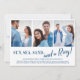 Os cartões de noivado são perfeitos para quando você não tem uma data de casamento marcada, mas você não pode esperar para compartilhar as boas notícias com seus amigos e família! Este cartão temático da praia apresenta 3 fotos do casal feliz na frente, com uma versão moderna do roteiro de pincel para o anúncio. Há uma quarta foto atrás. Se precisar de ajuda para o design, ou se quiser combinar produtos ou outras formas de cores, contacte-me através do Zazzle.