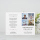 Programa de funeral limpo e minimalista com fontes elegantes. Adicione quatro fotos do seu amado junto com o nome e os anos de vida deles. Por trás você pode escrever o obituário e o programa e tributos. Dobre você mesmo para um programa prático!