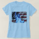 Tshirt do desenhista das mulheres que indica a bandeira americana & a estátua da liberdade. Os trabalhos de arte originais são certos agarrar a atenção de todos. Comemore a independência de América no 4o julho pedindo agora!