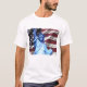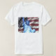 Tshirt do desenhista dos homens que indica a bandeira americana & a estátua da liberdade. Os trabalhos de arte originais são certos agarrar a atenção de todos. Comemore a independência de América no 4o julho pedindo agora!