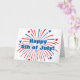 4o feliz do cartão de julho para o partido do Dia da Independência. Cartão de Personalizable com design dos fogos-de-artifício. Ilustração festiva para o churrasco 4thofjuly, o casamento, o aniversário, cores brancas do chá de fraldas etc. e azuis vermelhas patrióticas da bandeira americana. Impressão da bandeira dos Estados Unidos dos EUA para o feriado nacional. Apropriado para as mulheres e os miúdos dos homens (menino ou menina) disponíveis como o cartão desproporcionado da extra grande grande.