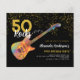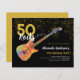 50 Rocks rock and roll gold glitter 50th festas de aniversário de convites orçamentários com uma legal guitarra com padrão colorido e laranja picante de guarda guitarra e notas musicais ilustração com tipografia personalizada de caligrafia moderna a preto e ouro. Essa modelo fácil de usar cria o convite personalizado perfeito para celebrar cinquenta no estilo rock n roll e é ideal para um guitarrista, músico e amante da música. Qualquer guitarrista lhe dirá que você nunca pode ter muitas guitarras. Este legal instrumento musical moderno design comemora a energia musical deste maravilhoso instrumento musical e é a forma perfeita de celebrar o quinquagésimo aniversário. Arte original da artista Catherine Sweetman