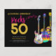 Rochas personalizadas 50º convites cor-de-rosa preto e dourados com três designs legal de guitarra a aquarela. Uma guitarra elétrica com padrão colorido e guarda branca para picadas, uma guitarra semisacústica multicolorida e uma ilustração de arte acústica clássica psicodélica com tipografia legal personalizada negra e dourada. Esse modelo fácil de usar cria o convite perfeito para celebrar cinquenta no estilo rock n roll e é ideal para um guitarrista, músico e amante da música. Qualquer guitarrista lhe dirá que você nunca pode ter muitas guitarras. Este legal instrumento musical moderno design comemora a energia musical deste maravilhoso instrumento musical e é a forma perfeita de celebrar o quinquagésimo aniversário. Arte original da artista Catherine Sweetman
