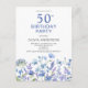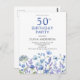 Prepare-se para a festa com este cartão postal azul de 50 anos. Fácil de mudar o texto. Bonito aquarela botânica de flor silvestre.