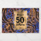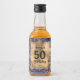 Celebrar 50 com esta etiqueta de mini garrafa de licor com uma folha de ouro elegante sobre um padrão colorido de impressão de um animal leopardo selvagem em azul, bronzeado, coral e marrom. MUDE o texto da sua ocasião. CORRESPONDENDO a itens na nossa loja.
