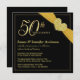 Convites de festas Elegantes Dourados e Pretos do 50º Aniversário com fita de ouro e design de pedra-do-índio — Personalize os nomes, a data e os detalhes para sua feliz ocasião. **NOTA: Dimensionado para cartões de convite SQUARE. CARGA EXTRA NECESSÁRIA. Correspondência de postagem e cartas de agradecimento disponíveis.