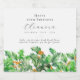 Mesa perfeita para uma festa de aniversário de dezembro. O Sagrado Verde é a flor de nascimento daquele mês. Ele forma uma bonito borda de fundo de aquarela nesta rústica etiqueta de vinho personalizada. O nome, a idade e a data de nascimento do hóspede de aniversário são colocados por cima dele usando caligrafia e tipografia elegantes. Todo texto é editável.