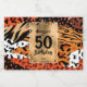 Celebrar 50 com este rótulo de mini garrafa de licor com uma folha de ouro elegante e suja sobre um padrão colorido de impressão animal selvagem em laranja, castanho e preto. MUDE o texto da sua ocasião. CORRESPONDENDO a itens na nossa loja.