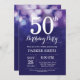 50º Convite de Aniversário com Luzes de Cordas Azuis Marinho com Fundo Azul-brilhante Marinho. Aniversário Azul marinho. Aniversário Adulto. Homens ou Mulheres no Dia Convidam. 13 15 16º 18º 20 21rua 30 40º 50º 60º 80 70 100º, qualquer idade. Para mais personalização, clique no botão "Personalizar" e use nossa ferramenta de design para modificar este modelo.