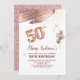 50º Aniversário, pingos de rosa dourado Convite Um convite moderno, na moda e glamouroso para uma festa de aniversário 50ª. Um fundo rosa de ouro falso com pingos, pintura com pingos. O nome é escrito com um moderno e escuro, rosa dourado, escrito com letra de estilo manuscrito. Personalize e adicione os detalhes da sua festa. O número 50 é escrito com uma fonte de estilo balão, script.
