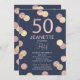 50º Aniversário Rosa de Convite Dourado e Marinho