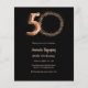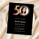 Um convite para fotos moderno e na moda para uma festa de aniversário 50ª. Um fundo preto, texto rosa dourado. Personalize e adicione os detalhes da sua festa. 1 folha = 1 convite impresso de borda a borda.