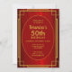 Chic e elegante convite de aniversário vermelho-brilhante 50º. O texto pode ser personalizado para aniversários, aniversários ou qualquer tipo de celebração.