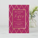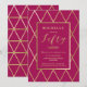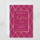 Este elegante e tenente convite para comemoração de 50 anos pode ser personalizado para sua ocasião especial. Apresenta um quadro de ouro e linhas geométricas de fundo douradas. A palavra "Cinquenta" está em uma fonte de script de na moda. A cor e o texto do plano de fundo podem ser alterados para seu gosto. Um convite perfeito para o aniversário de um adulto.