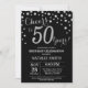 50º Convite de Aniversário com Fundo de Diamante Glitter Negro e Silver. Prata Confetti. Aniversário Adulto. Homens ou Mulheres Aniversário. Para mais personalização, clique no botão "Personalizar" e use a ferramenta design para modificar este modelo.