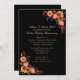Que bela maneira de enviar convites para a sua 50ª celebração do Ouro. Feito um fundo preto com designs florais no canto, incluindo todos os detalhes da parte em texto amarelo.