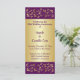 Este elegante roxo real e ouro floral 50º aniversário de casamento, modelo da cerimônia de renovação do programa de renovação do voo ou da ordem do cartão de serviço é totalmente personalizável. Você também pode alterar o texto para ser um cartão de menu ou um calendário de recepção de eventos ou itinerário. Se você precisar de assistência para personalizar isso com seus detalhes ou se precisar de outros itens correspondentes, envie um email para niteowlstudio@gmail.com.