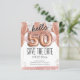 olá 50 festa de aniversário guarde os balões rosa-brilho de data. Reserve a Data