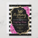 50º Aniversário Convite Elegante design cor-de-rosa preto branco com brilho falso. Listras brancas e pretas com rosas cor-de-rosa. Perfeito para uma bolsa mensageifesta de aniversario elegante.