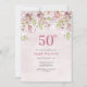 Adorável 50º convite de aniversário com um fundo floral padronizado. © Mini Moi Impressões
