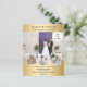 Crie sua própria colagem de fotos exclusiva. Use quatro, quatro das suas fotos favoritas. Personalize e adicione seus nomes e detalhes da festa. Um fundo de aparência dourada, texto preto. 1 folha = 1 convite impresso de borda a borda.