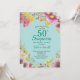 Surpresa Floral 50º Convite de Aniversário para Mulheres. Água Floral, Azul Aqua Turquoise Fundo.