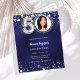 Um convite para fotos moderno e na moda para uma festa de aniversário 50ª. Um fundo azul marinho, decorado com estrelas. A cor azul é irregular. Personalize e adicione sua foto e detalhes da festa. 1 folha = 1 convite impresso de borda a borda.
