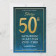 Celebre o seu 50º com este convite divertido, mas clássico, com belos gradientes azuis e a silhueta de palmeiras com sotaques de ouro.