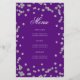 Design de "Programa de Festa de aniversário" elegante com Glitter Confetti em Prata e Roxo com texto personalizado.