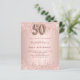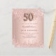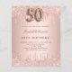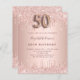 Um convite moderno, na moda e glamouroso para a 50ª festa de aniversário. Um fundo rosa dourado com pingos de rosa dourado, pintura pingada. O nome é escrito com um moderno e escuro, rosa dourado, escrito com letra de estilo manuscrito. Personalize e adicione os detalhes da sua festa. O número 50 é escrito com uma fonte de estilo balão, script.