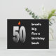 Este convite legal é perfeito para uma festa de aniversário de 50 anos ou 50 anos ou qualquer coisa que esteja fazendo 50 anos com uma parte envolvida. "50" é grande e tem um fundo preto com uma chama no topo. "Brad's Big Five-Oh Birthday Bash" está na frente e todas as linhas podem ser mudadas por você. O mesmo vale para o fundo do convite. Mais grandes convites para vir incluindo 40º e 30.