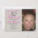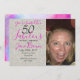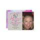 Um convite de 50 anos, colorido e moderno, que pode ser personalizado para as celebrações de 50 anos. A foto pode ser substituída por uma foto sua. O texto cor-de-rosa e preto pode ser alterado para a informação que você precisa para lhe dar os convidados. Um padrão moderno colorido em cor de água roxa e rosa enfeita a parte de trás do cartão.