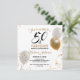Comemore seu aniversário de 50 anos em estilo com este elegante e divertido design em preto e ouro com balões de ouro e de festas brancas em segundo plano. Adicione sua foto à parte traseira do convite usando a função de edição. Você também pode alterar a fonte, o tamanho da fonte e as cores da fonte.