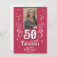 50 e Fabuloso Cartão com fotos de folhagem Magenta 50. 50 e um texto fabuloso em um roteiro branco com um nome e uma folhagem branca num fundo magenta vívido. Personalize com sua foto, seu nome e a idade. Adicione o texto na parte traseira da placa ou apague-a.