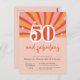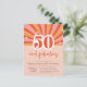 Adicione uma vibração retrógrada à sua festa de cinquenta anos com estes convites de cinquenta anos. Com um design vibrante e fácil de personalizar com todos os detalhes da celebração. Pêssego, cor-de-rosa e vermelho, com o texto: "50 e fabuloso! Junte-se às comemorações do (nome) aniversário".