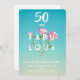 Um trabalho de arte de aquarela de rosas cor-de-rosa contra um fundo azul-coral verde colorido com texto personalizado para um convite perfeito para o aniversário.