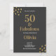 50 e Fabuloso Convite de Aniversário para Ouro e Preto. Perfeito para sua comemoração de 50 anos. Personalizar para torná-lo mais personalizado.
