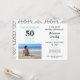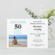Torne a 50 uma ocasião simplesmente fabulosa e especial com este convite de fotos de aniversário divertida e elegante. Personalize-o e envie-o para a sua grande celebração. As palavras "50 e Simplesmente Fabuloso" estão em tipografia azul-clara e negra. Você pode mudar a foto com sua própria foto, se quiser. As cores e estilos do texto podem ser alterados pelo menu de edição. A parte de trás do convite tem um belo padrão geométrico de cinzas com círculos.