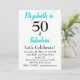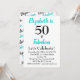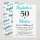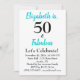 Convide amigos para comemorar seu amado Fabuloso 50º Aniversário com este ousado e elegante design de 50º aniversário que é fácil de personalizar apenas para aquela aniversariante especial. 50 e Fabuloso em turquesa e texto preto.