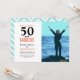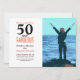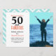 O moderno convite fotográfico de 50 anos que você pode personalizar e enviar para comemorar fazendo 50 anos. "50 e fabuloso" é definido em um design popular em coral, e preto. Texto em coral e preto que você pode personalizar usando o menu de edição. Substitua a foto pela sua. Há um padrão verde-menta no verso que pode ser mudado.