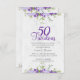 Cartão de convite de 50 anos e fabuloso com tons de roxo em aquarela floral com envelope.