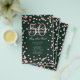 Design de "Programa de Festa de aniversário" elegante com Glitter Confetti em Rosa Dourado e Emerald com texto personalizado.