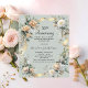 Um fundo verde sábio. Decorados com os florais brancos e amarelos e uma fita de ouro. Personalize e adicione um nome e detalhes. 1 folha = 1 convite impresso de borda a borda.