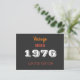 50º Convite de aniversário - Vintage 1976 Edição Limitada - Cartão postal do Partido Celebra um marco no estilo retrô! Este cartão postal do 50º convite de aniversário apresenta um design "Vintage 1976 - Limited Edition" ousado, perfeito para dar o tom para uma celebração nostálgica e divertida. design 🎉: Tipografia vintage em dificuldades com números ousados para um formato 📮 retrovisor legal: convite postal clássico - fácil de enviar, não é necessário 🧑 personalizar: Adicione os detalhes do evento, nome, localização e informações RSVP 🎁 Perfeito para: festas surpresa, celebrações familiares, eventos de aniversário de marco Torne 50 inesquecível com este na moda e convite fácil de enviar para a festa!