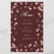 Design de "Programa de Festa de aniversário" elegante com Glitter Confetti em Rosa Dourado e Borgonha com texto personalizado.