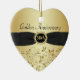 Este coração cerâmico deu forma ao preto e os enfeites de natal florais do aniversário de casamento dourado do ouro têm uma fita IMPRESSA preto com um preto e o medalhão IMPRESSO ouro nele. Fariam uma lembrança bonita para o casal que comemora 50 anos junto. O texto é customizável. Se você precisa a ajuda que personaliza o, envie por correio electrónico por favor niteowlstudio@gmail.com.
